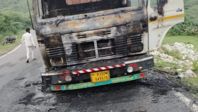 ( टहला सड़क पर चलते डमफर में शार्ट सर्किट से लगी आग मौके पर पहुंची फायर ब्रिगेड की गाड़ियां आग…