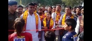 उत्तर प्रदेश के जनपद फिरोजाबाद के दाऊ दयाल स्टेडियम में आज स्वर्गीय श्री बलवीर सिंह गुर्जर पूर्व निरीक्षक नगर निगम फिरोजाबाद की स्मृति में आज पराक्रम द स्कूल ऑफ डिफेंस व खुशी इन्फोटेक कंप्यूटर सेंटर द्वारा सैकड़ों विद्यार्थियों की कराई गई दौड़ छात्र-छात्राओं में छिपी हुई प्रतिभा को निखारने के लिए आज दौड़ प्रतियोगिता का आयोजन कराया गया इस दौरान मुख्य अतिथि के रूप में महापौर मेयर नूतन राठौर व अतुल प्रताप सिंह द्वारा दीप प्रज्वलित कर व हरी झंडी दिखाकर कार्यक्रम का शुभारंभ कराया गया वहीं इस दौरान सीओ टूंडला द्वारा भी बच्चों की प्रतिभा को देखकर बच्चों का हौसला अफजाई करने के साथ-साथ उन्हें जीवन में आगे बढ़ने की प्रेरणा दी व कार्यक्रम के विशेष सहयोगी केडीएस चौहान ,इंद्रपाल सिंह ,भाजपा जिला मीडिया प्रवक्ता अमित गुप्ता, यशपाल यस द्वारा भी कार्यक्रम की व्यवस्था पूर्ण तरीके से संपन्न करायी गयी इस दौड़ प्रतियोगिता में महिला व पुरुषों ने 400 मीटर 800 मीटर व 1500 मीटर की दौड़ प्रतियोगिता में अपना हुनर दिखाते हुए प्रतिभाग किया प्रतियोगिता में विजय रहे प्रथम द्वितीय व तृतीय स्थान प्राप्त करने वाले छात्र-छात्राओं विशिष्ट अतिथियों द्वारा उन्हें मेडल पहनाकर उनका सम्मान किया गया |