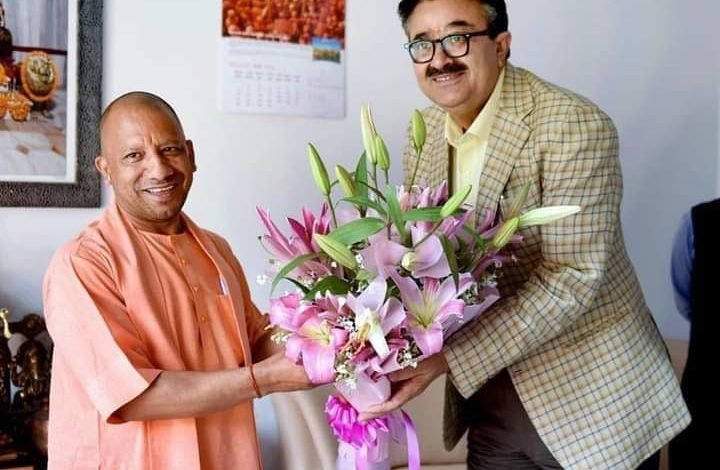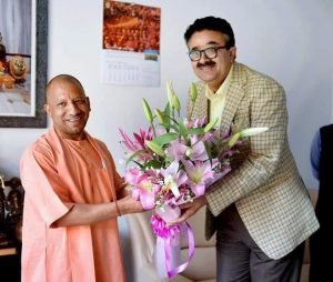 ( नवनीत सहगल अपर मुख्य सचिव सूचना ने मुख्यमंत्री योगी आदित्यनाथ को पुनः जीत पर पुष्पगुच्छ भेंट कर बधाई दी )