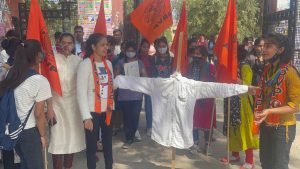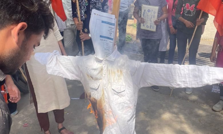 राजस्थान अलवर जीडी कॉलेज के मुख्य गेट पर कैबिनेट मंत्री का पुतला जलाया, छात्राऐं बोलीं ऐसे बयान बर्दाश्त नहीं होंगे