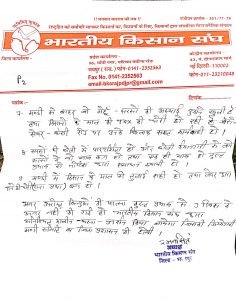 ( भरतपुर भारतीय किसान संघ द्वारा सरसों मंडी में किसानों की विभिन्न समस्याओं के निराकरण हेतु धरना प्रदर्शन कर कृषि उपज मंडी सचिव को सौंपा गया ज्ञापन )
