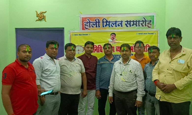 ( औरैया दिबियापुर प्रतिनिधि उद्योग व्यापार मंडल पदाधिकारियों ने मनाया होली मिलन समारोह एक दूसरे को अबीर गुलाल लगाकर फूलों की खेली होली )