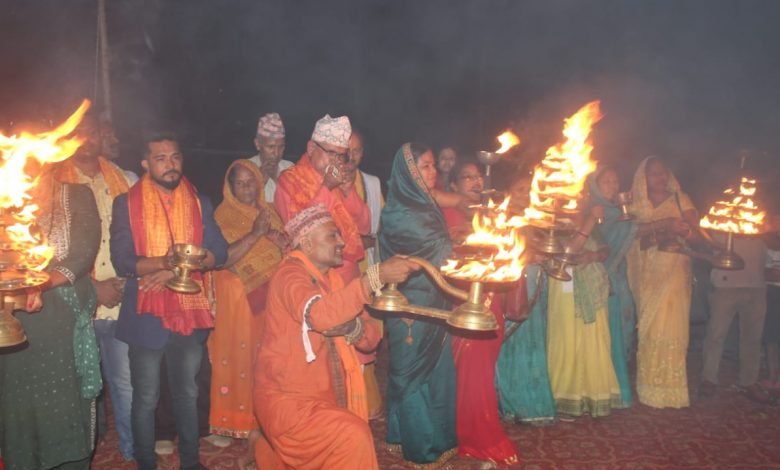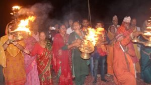गोरखपुर वाल्मीकिनगर बुद्ध पूर्णिमा की पूर्व संध्या अवसर पर भारत नेपाल सीमा के बेलवा घाट परिसर में अंतरराष्ट्रीय ट्रस्ट स्वरांजलि सेवा संस्थान द्वारा 102 वीं नारायणी गंडकी महाआरती कार्यक्रम का आयोजन किया गया। मुख्य अतिथि नेपाल के धर्मपाल संत गुरु वशिष्ठ जी महाराज, लोकप्रिय कलाकार डी. आनंद, एम.डी संगीत आनंद, राष्ट्रीय अध्यक्षा अंजू देवी, विशिष्ट अतिथि चितवन नेपाल के समाजसेवी गणेश भट्टराई, थारू कला संस्कृति एवं प्रशिक्षण संस्थान के सचिव होमलाल प्रसाद, संत रामानंद स्वामी, जिमरी नौतनवा के मुखिया खुबलाल बडघरिया, आचार्य पंडित उदयभानु चतुर्वेदी, शिक्षक डॉक्टर दीपक नाथ , विजय कुमार झा,रिशु गुप्ता, पूर्वा होटल के प्रबंधक राजन सोनी, एवम् थरुहट की सेवा निवृत शिक्षिका दमयंती देवी, ने संयुक्त रूप से दीप प्रज्वलित करके किया। मुख्य अतिथि धर्मपाल गुरु वशिष्ठ ने कहा कि संगम तट पर महा आरती का आयोजन विश्व शांति के निमित्त वर्ष 2014 से जारी है। ताम्रभद्र,सोनभद्र और नारायणी गंडकी का यही मिलन स्थल है। इस नदी में साक्षात विष्णु भगवान के रूप शालिग्राम देवता पाए जाते हैं। जिसकी पूजा करने से मानव सुखी बन जाता है। विशिष्ट अतिथि गणेश भट्टराई ने बुद्ध पूर्णिमा की महिमा से भक्तों को रूबरू कराया। सचिव होमलाल प्रसाद ने थारू स्वर्ण जयंती समारोह हरनाटांड कार्यक्रम में भक्तों को आमंत्रित किया। धर्मपाल वशिष्ठ जी महाराज ने कहा कि 18 मई की सुबह वशिष्ठ डेयरी उद्योग नेपाल एवम् स्वरांजलि सेवा संस्थान के सहयोग से विशेष चलंत दरिद्र नारायण भोज का आयोजन इंडो नेपाल बॉर्डर पर किया जाएगा।भारत नेपाल के उपस्थित सैकड़ों भक्तों ने नारायणी गंडकी माता की जय घोष करके विश्व शांति की कामना की। देर रात तक भक्ति गंगा बहती रही। उपस्थित सभी भक्तों ने पर्यावरण संरक्षण संवर्धन एवं प्राकृतिक धरोहरों की रक्षा का संकल्प लिया। पूर्वा होटल व फैमिली रेस्टुरेंट द्वारा महा फसाद का इंतजाम किया गया। लक्ष्मीपुर रमपुरवा पंचायत के मुखिया प्रतिनिधि सह समाजसेवी सुमन सिंह के सौजन्य से अंगवस्त्रम द्वारा आगत अतिथि गण सम्मानित किए गए।गायक संगीत आनंद,गायिका आशा साहू, कोषाध्यक व गायक शिवचंद्र शर्मा,गीता कुमारी, गायक संगीत शर्मा , चांदनी कुमारी, और खूबलाल बडघडिया के मधुर भजनों पर देर तक श्रोता गण भक्ति सागर में डुबकी लगाते रहे । विशिष्ट प्रतिभा संपन्न व्यक्तित्व नारायणी गंडकी सम्मान से सम्मानित किए गए। जिसमे रिशु गुप्ता, नागेंद्र प्रसाद,शिक्षिका गायत्री राय, थरुहट के कैमरामैन शुभम नीरज,आनंद पटवारी, दमयंती देवी तथा आशा साहू के नाम उल्लेखनीय है।मंच संचालन डी.आनंद ने किया। जबकि धन्यवाद ज्ञापन होमलाल प्रसाद ने किया। नेपाल से आए मुख्