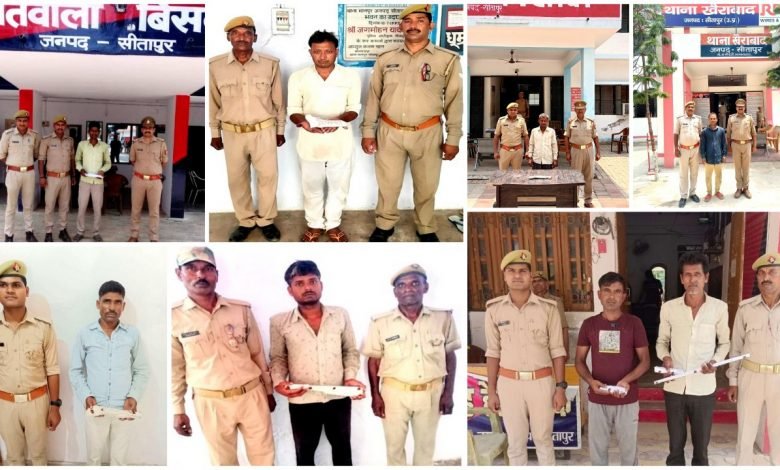 उत्तर प्रदेश सीतापुर ऑपरेशन पाताल तहत पुलिस टीमों द्वारा सघन अभियान चलाकर विभिन्न स्थानों से 08 अवैध शस्त्र बरामद कर दो बीस-बीस हजार के इनामिया सहित 10 टाप टेन अपराधियों को गिरफ्तार कर किया गया सलाखों केे पीछे। ( संध्या सिंह की खास रिपोर्ट )