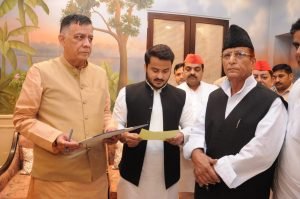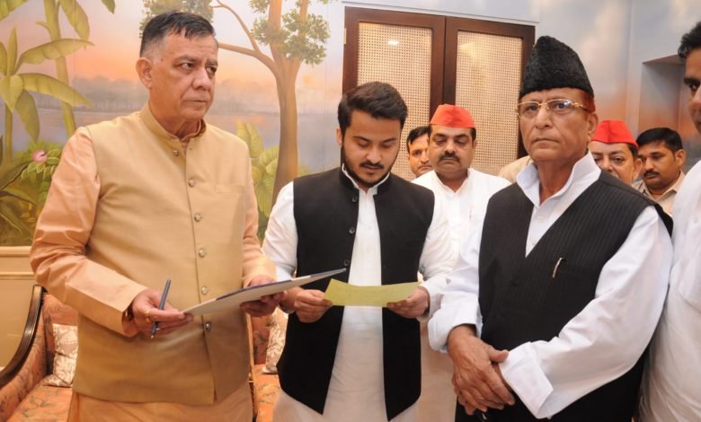 ( रामपुर विधानसभा सीट से सपा विधायक आजम खान को विधानसभा सदस्य के रूप में अध्यक्ष सतीश महाना ने विधायक पद की दिलाई शपथ )