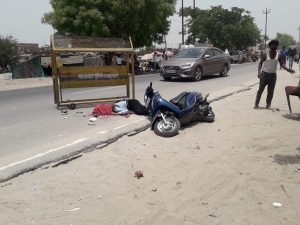 ( कानपुर गंगा बैराज पुल पार थाना कोहना क्षेत्र स्कूटी सवार लड़कियों को बालू लदे ट्रक ने टक्कर मारकर हुआ फरार 1 की मौके पर हुई मौत दुसरी हुईं गम्भीर रूप से घायल मौके पर पहुंची पुलिस शव को कब्जे में लेकर भेजा पीएम हाउस घायल को पहुंचाया अस्पताल )