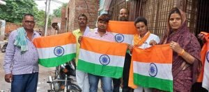 उत्तर प्रदेश औरैया आजादी के 75वें स्वतंत्रता दिवस के उपलक्ष्य में मानाये जा रहे आजादी के अमृत महोत्सव को भव्य बानाने के लिये सदर विधायक गुड़िया कठेरिया ने आज अपने आवास स्थित गांव भर्रापुर व क्षेत्र के लोगों को तिरंगा झंडा वितरण किया। जिस से गांव व क्षेत्र में तिरंगा हर घर में फैराया जा सकें। एवं हमारे प्रदेश एवं देश को एक नई पहचान मिले। जहां लोगों ने सदर विधायका के अभाहन पर संकल्प लिया की हम हर घर व हर छत तिरंगा फैरायेंगे। तथा गांव के लोगों से अपनी विधायका के साथ तिरंगा झंडा लेकर एक फोटो भी खिंचवाई। सदर विधायक गुड़िया कठेरिया ने 10000 तिरंगा झंडा वितरण करने का भी संकल्प लिया। और विधायका ने फोटो के जरिए आम जनमानस से अपील की अपने अपने घर पर तिरंगा जरुर लगाएं। जिस से हमारे तिरंगा की नई पहचान व पूरे विश्व में गौरब बड़े। इस मौके पर प्रिंस सेंगर अनुज गुड़िया कठेरिया, मुकेश कठेरिया, आर्यन, अंशू, शिवम दुवे सहियत भारतीय जनता पार्टी के कार्यकरता आदि लोग मौजूद रहे।
