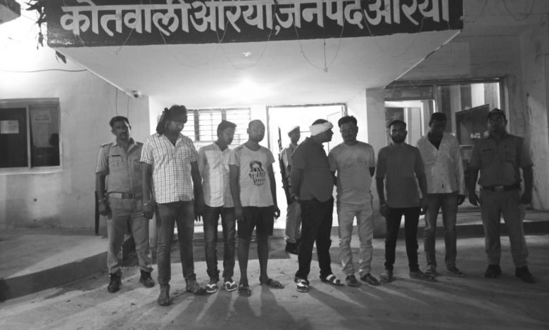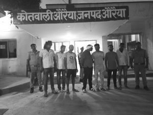 उत्तर प्रदेश औरैया थाना कोतवाली के उ0नि0 सुरेन्द्र सिंह द्वारा गश्त/चेकिंग के दौरान अभियुक्तगण अभियुक्त जितेंद्र चौहान पुत्र शिवनंदन सिंह निवासी ग्राम आनेपुर ,अंकित शर्मा उर्फ बॉबी चौधरी पुत्र अशोक शर्मा निवासी मोहल्ला मदार दरवाजा ,अजय प्रताप सिंह पुत्र चंद्रपाल सिंह चौहान निवासी ग्राम सम्रतपुर ,सत्येंद्र चौहान पुत्र विशाल सिंह चौहान निवासी ग्राम आनेपुर ,कल्लू तिवारी पुत्र ओम प्रकाश तिवारी निवासी मोहल्लाबनारसीदास ,आलोक राजावत पुत्र आसाराम राजावत निवासी मोहल्ला बनारसीदास ,सब्बू खान पुत्र खान निवासी ग्राम सम्रत पुर,.नफीस खान पुत्र मुन्ना खान निवासी समृतपुर औरैया को गिरफ्तार किया गया जनके कब्जे से 52 ताश पत्ते व कुल 20840 रू बरामद कर धारा 13 जुआ अधिनियम पंजीकृत कर विधिक कार्यवाही की गयी । उधर थाना कोतवाली के उ0नि0 सुरेन्द्र सिंह द्वारा अभियुक्त महेश बाबू पुत्र मुरलीधर व गोविंद पुत्र ब्रह्मादीन निवासी ग्राम मढ़ापुर को गिरफ्तार किया गया। अभियुक्त के कब्जे से 10_10 लीटर नाजायज कच्ची शराब बरामद हुआ। वही जनपदीय पुलिस द्वारा विभिन्न थानों से 5 अभियुक्तों को धारा 151 द0प्र0सं0 के अंतर्गत गिरफ्तार कर चालान मा0 न्यायालय किया गया।
