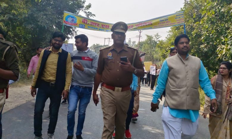 उत्तर प्रदेश औरैया अजीतमल कस्बे में आज दिनांक 30/11/2022 दिन बुधवार को यातायात माह की समापन दिवस के अवसर पर बी आर एस डी इंटर कॉलेज बाबरपुर अजीतमल औरैया द्वारा एक विशेष रैली का आयोजन किया गया जिसमें मुख्य अतिथि रिहाना बानो जिला परिवहन अधिकारी के द्वारा रैली को हरी झंडी दिखाकर रैली को रवाना किया गया मुख्य अतिथि ने छात्रों के द्वारा बनाए गए यातायात पोस्टरों की सराहना की गई और यह भी निर्देश दिए कि बिना हेलमेट के वाहन को ना चलाएं वहीं दूसरी ओर क्षेत्राधिकारी सुरेंद्र नाथ यादव,थाना प्रभारी रजनीश कटियार ने भी रैली में साथ रहकर छात्रों का उत्साहवर्धन किया। रिहाना बानो द्वारा बाबरपुर तिराहे पर काफी लोगों को हेलमेट पहनकर चलने की सलाह दी, इस मौके पर विद्यालय के प्रधानाचार्य आर एस मिश्रा, निर्देशक रोहित मिश्रा, मोहनीश पांडे ,संजीव त्रिपाठी, संदीप ,विक्रम, अजय चौहान, अनिल पाठक,बृज किशोर चौबे, आदेश, सुबोध ,कुलदीप, दीपक चौहान ,महिला अध्यापक भूमिका मिश्रा, शिवानी ,अनुराधा ,भारती, अमृता, शिवांगी कुशवाह आदि शिक्षकगण ,विद्यार्थी और नगरवासी इत्यादि लोग उपस्थित रहे।