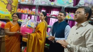 गोण्डा विकास भनव में बाल विकास सेवा एवं पुष्टाहार विभाग द्वारा स्थापित खिलौना बैंक का आकांक्षा समिति की अध्यक्षा श्रीमती शाम्भवी सिंह एवं जिलाधिकारी डाक्टर उज्ज्वल कुमार ने दीप प्रज्वलित एवं फीता काटकर किया शुभारंभ। वहीं कार्यक्रम के दौरान विकास खण्ड झंझरी के पांच आंगनवाड़ी केंद्र आशा सिंह आंगनबाड़ी कार्यकत्री परेड सरकार, झंझरी, गोण्डा सारिका तिवारी,मिनि आंगनबाड़ी कार्यकत्री भगहर बुलन्द, झंझरी, गोण्डा संजू यादव,आंगनबाड़ी कार्यकत्री परेड सरकार, झंझरी, गोण्डा पूर्णिमा श्रीवास्तव, आंगनबाड़ी कार्यकत्री मादे, झंझरी, गोण्डा लक्ष्मी, आंगनबाड़ी कार्यकत्री कमला सिंह, आंगनबाड़ी कार्यकत्री रूद्रपुर बिसेन, झंझरी, गोण्डा के कार्यकत्री को खिलौना किट दिया गया। ताकि आंगनबाड़ी केंद्र के बच्चों के मानसिक एवं सारीरिक विकास पूरी तरह से हो सके। इसके साथ ही खिलौना बैंक से ही एक बच्चे को आकांक्षा समिति के अध्यक्षा एवं जिलाधिकारी द्वारा खिलौना प्रदान किया गया। कार्यक्रम के दौरान जिलाधिकारी ने कहा कि इसका मेन उद्देश्य है कि जनपद में जितने भी आंगनबाड़ी केंद्र है वहां पर प्लेइंग के साथ-साथ लर्निंग भी हो दोनों सुविधा हो और वहां के बच्चों को खिलौना दिया जा सके। ताकि बच्चे वहां खेले और पढ़े जिससे उनका मानसिक एवं सारीरिक दोनों विकास हो, तथा कार्यक्रम का संचालन जिला कार्यक्रम अधिकारी धर्मेन्द्र कुमार गौतम द्वारा किया गया। इस अवसर पर मुख्य विकास अधिकारी गौरव कुमार, जिला विकास अधिकारी दिनकर विद्यार्थी, परियोजना डीआरडीए चंद्रशेखर, डीसी एनआरएलएम नरेश बाबू सविता, डीसी मनरेगा संत कुमार, जिला पंचायत राज अधिकारी लालजी दुबे, जिला कार्यक्रम अधिकारी धर्मेंद्र गौतम, खंड विकास अधिकारी रुपईडीह वर्षा सिंह, सहित विकास भवन के समस्त अधिकारी, बाल विकास परियोजना अधिकारी- महेन्द्र कुमार वर्मा, श्रीमती अंजना झां, नीतू रावत, दुर्गेश गुप्ता, अभिषेक दूबे, मुख्य सेविका – शकुन्तला देवी एवं उर्मिला देवी, जिला कार्यक्रम अधिकारी कार्यालय के स्टाप प्रबोध शेखर श्रीवास्तव, ज्ञानेन्द्र शरण, रणजीत, इमरान अली, सरोज तिवारी, लालमन,कालिका प्रसाद, शिव पूजन, परेश आनन्द उपस्थित रहे।