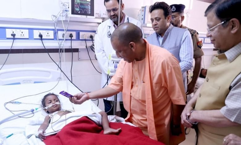 ( लखनऊ कोर्ट रूम में हुए हत्याकांड में घायल डेढ़ शाल की बच्ची से मिलने पहुंचे केजीएमयू ट्रामा सेंटर मुख्यमंत्री योगी आदित्यनाथ )