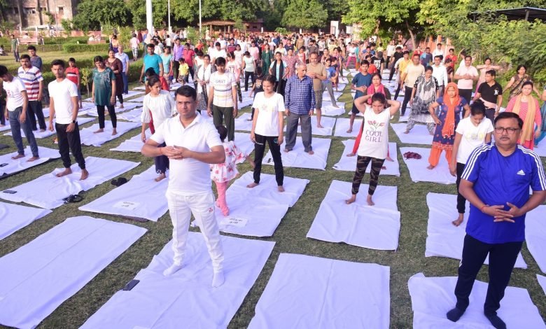 उत्तर प्रदेश जिला फिरोजाबाद अटल पार्क में योग के माध्यम से लोगों को शारीरिक एवं मानसिक रूप से स्वस्थ बनाकर भारत देश को समृद्धशाली बनाने के लिए अंतर्राष्ट्रीय योग दिवस पर अधिक से अधिक लोगों तक योग पहुंचाने के लिए आयुष मंत्रालय भारत सरकार की थीम हर घर आंगन योग के अनुसार 15 से 21 जून तक चलने वाले योग सप्ताह का शुभारंभ नगर के अटल पार्क में सदर विधायक मनीष असीजा व जिलाधिकारी डॉ उज्जवल कुमार के द्वारा भगवान धन्वंतरि के चित्र पर दीप प्रज्वलन एवं माल्यार्पण के साथ किया गया। इस अवसर पर सदर विधायक मनीष असीजा ने योग साधकों को सम्बोधित करते हुए कहा कि योग व्यक्ति का शारीरिक, मानसिक, बौद्धिक एवं आध्यात्मिक विकास करता है और आत्मा को परमात्मा से जोड़ता है। कर्म योग हमें अपने दायित्वों का स्मरण कराता है तथा कर्म में लीन रहकर सांसारिक कार्य करते हुए सद्भाव पूर्वक सेवा के माध्यम से परमात्मा में लीन रहने की कला सिखाता है। जिलाधिकारी डॉ उज्जवल कुमार ने कहा कि योग स्वस्थ जीवन जीने की कला एवं विज्ञान है योग के माध्यम से हमें आत्मज्ञान की प्राप्ति एवं सांसारिक परेशानियों से मुक्ति मिलती है। उन्होने कहा कि योग हमें एकाग्रचित्त बनाकर हमारी कार्यक्षमता एवं कार्य कुशलता में वृद्धि करता है। उन्होने कहा कि योग हमारे ऋषि मुनियों द्वारा प्रदान की गई एक बहुमूल्य धरोहर है, जिसे देश के प्रधानमंत्री श्री नरेन्द्र मोदी जी ने विश्व को परिचित कराया है, आत दूनिया के अधिकांश देश योग को प्राथमिकता दे रहे है और अपनी दिनचर्या में शामिल कर रहें है। उन्होने कहा कि आज भौतिकवाद से पीडित मानवता को विभिन्न साध्य रोगों से बचाव के लिए योग को अपनी दिनचर्या का हिस्सा अवश्य बनाना चाहिए। क्षेत्रीय आयुर्वेदिक एवं यूनानी अधिकारी डॉ कल्पना गुप्ता ने कहा कि केंद्र एवं प्रदेश सरकार के निर्देशों के क्रम में जनपद के सभी पार्कों, सरोवर के किनारें, स्कूल, कॉलेजों, ग्राम पंचायतों, सहित सभी स्थानों पर पूरे सप्ताह भर योग शिविरों का आयोजन किया जाएगा तथा हर घर आंगन योग के तहत प्रत्येक परिवार तक योग को पहुंचाया जाएगा। उन्होने कहा कि आयूष मानवता की सेवा करता है लोग परेशानियों अथवा बीमारियों में आयुष विभाग के पास आते है और स्वस्थ्य होकर जाते है। इस प्रकार आयुष विभाग बीमार परेशान लोगों की सेवा करता है। उन्होने कहा कि योग आपकी हेल्थ को प्रमोट करता है। आज पूरी दूनिया योग में योग को विशेष रूप से मनाया जा रहा है। उन्होने कहा कि स्वास्थ्य ठीक है तो सब ठीक है। शिविर में परियोजना निदेशक प्रदीप कुमार पांडे, जिला दिव्यांगजन कल्याण अधिकारी जिला, जिला सूचना अधिकारी दयाशंकर सिंह, वरिष्ठ समाजसेवी प्रधानाचार्य भगवानदास शंखवार, जिला व्यायाम शिक