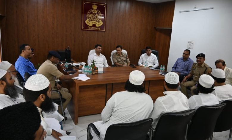उत्तर प्रदेश जिला फिरोजाबाद आगामी त्योहारों कावड़ यात्रा एवं ईद को लेकर सभी धर्म गुरुओं संघ पीस कमेटी मीटिंग का किया गया आयोजन इस मीटिंग का आयोजन जिला अधिकारी डॉ उज्जवल कुमार सिंह व वरिष्ठ पुलिस अधीक्षक आशीष तिवारी के निगरानी में किया गया शहर फिरोजाबाद के समस्त धर्म गुरुओं को बुलाकर आगामी त्योहारों कावड़ यात्रा एवं ईद उल जुहा के दृष्टिगत सभी धर्म गुरुओं एवं संवाद व्यक्तियों सन अपर पुलिस अधीक्षक नगर के कार्यालय पर पीस कमेटी की मीटिंग का किया गया आयोजन जिसमें आपसी सौहार्द एवं भाईचारे के साथ त्योहार को मनाए जाने के लिए किया गया जागरूक सभी के साथ आगामी त्योहारों के संबंध में विस्तृत विचार विमर्श करते हुए उनकी समस्याओं को सुनकर संबंधित विभागों को तत्काल समस्याओं का समाधान करने हेतु किए गए दिशा निर्देश सभी धर्म गुरुओं से अपील करते हुए कहा सभी चारे के साथ त्यौहार को मनाएं और शांति व्यवस्था बनाए रखें |