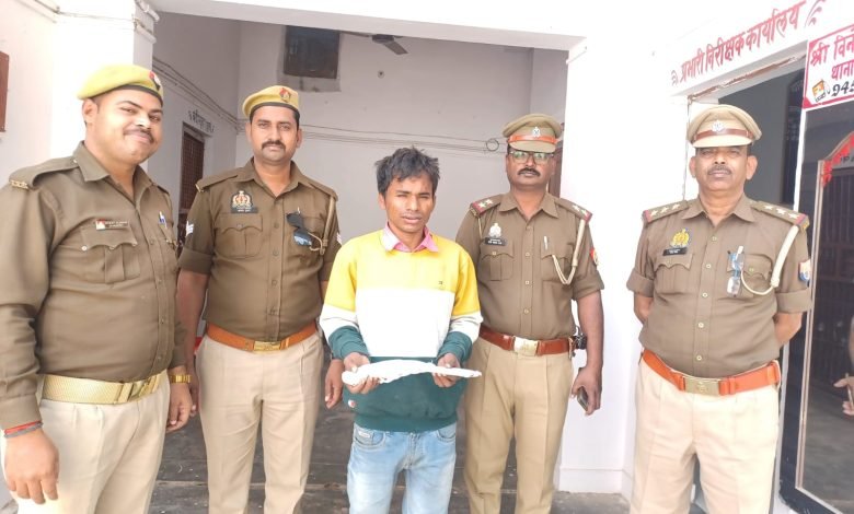 उत्तर प्रदेश औरया थाना फफूंद क्षेत्र में अवैध असलहा लेकर घर में घुसे दंबग युवक को परिजनों ने पकड़कर किया पुलिस के हवाले। ( पंकज सिंह राणावत की खास रिपोर्ट )