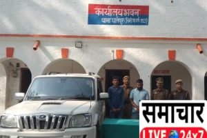 ( थाना धानेपुर पुलिस द्वारा चेकिंग/दबिश के दौरान 01 स्कार्पियो गाड़ी 80 किलो मांश व 01 चाकू बरामद कर 02 वांछित अभियुक्तों को किया गया गिरफ्तार )