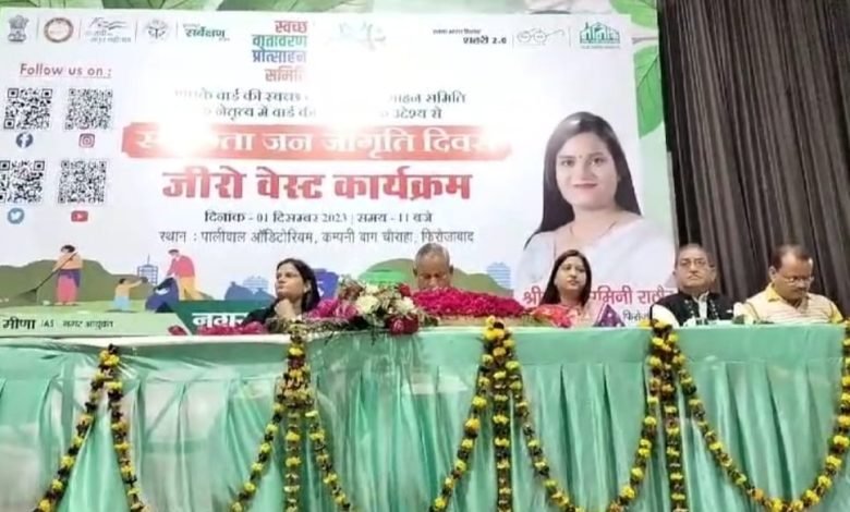 उत्तर प्रदेश जिला फिरोजाबाद उत्तर प्रदेश की प्रधानमंत्री एवं मुख्यमंत्री के दिशा निर्देशन में चलाए जा रहे स्वच्छता कार्यक्रम का अभियान के अंतर्गत आज नगर फिरोजाबाद में नगर निगम फिरोजाबाद की मेयर कामिनी राठौर के द्वारा पालीवाल हॉल फिरोजाबाद में स्वच्छता कार्यक्रम के अभियान को सफल बनाने के लिए जनपद फिरोजाबाद के समस्त सफाई कर्मियों को बुलाकर जीरो बेस्ट कार्यक्रम का किया गया आयोजन इस कार्यक्रम में उपस्थित सफाई कर्मियों को नगर को स्वच्छ से साफ बनाने के लिए स्वच्छता कार्यक्रम को सफल बनाने के लिए अनेकों अनेक प्रकार की दी गई जानकारियां कार्यक्रम में उपस्थित जनपद फिरोजाबाद की मेयर कामिनी राठौर के द्वारा दी गई जानकारी में बताया गया जीरो बेस्ट कार्यक्रम के माध्यम से अपने जनपद को स्वच्छ और साफ बनाने का अभियान है और यह अपने ही जनपद में नहीं बल्कि पूरे उत्तर प्रदेश में अभियान चलाया जा रहा है जिससे कि हमारा उत्तर प्रदेश स्वच्छता की ओर कदम बढ़ाता हुआ नजर आए इस कार्यक्रम को बुलंदियों तक ले जाने के लिए नगर फिरोजाबाद के समस्त वार्डों के सभासद एवं सफाई कर्मी रहे उपस्थित इन सभी को दिशा निर्देश देते हुए बताया गया अपने-अपने वार्डों को साफ सुथरा स्वच्छ बनाने में अपना योगदान करें