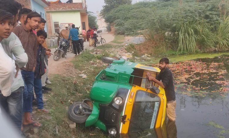उत्तर प्रदेश औरैया दिबियापुर से सवारी लेकर फफूंद आरहा ऑटो नगर के नुमाइश मैदान के पास पहुचते ही टूटी हुई सड़क के कारण अनियंत्रित होकर बगल तालाब में जा गिरा l ऑटो में बैठी पांच सवारियां पानी मे गिरकर भीग गई। गलीमत रही की किसी को कोई चोट नही आई।नगर स्थित नुमाइस मैदान से दरगाह जाने वाली सड़क तालाब के किनारे टूटी हुई है। सड़क सकरी होने के कारण वहां से वाहनो का क्रास होना या ओबरटेक करना मुश्किल होता है गुरुवार की दोपहर लगभग तीन बजे दिबियापुर से सवारी लेकर आरहा ऑटो नगर के नुमाइश मैदान से आगे दरगाह के दरगाह के पास पहुंचा तभी विपरीत दिशा से दूसरा ऑटो आ जाने के कारण चालक ने उसे जगह देने के लिए अपना ऑटो तालाब की औऱ किया जिससे ऑटो टूटी हुई सड़क के कारण अनियंत्रित होकर तालाब मे जा गिरा जिससे उसमे बैठी सवारियां जिसमे परी आठ वर्ष, माहिर अदा खान 14 वर्ष निवासी मोहल्ला बाबा का पुरवा फफूंद जो दिबियापुर में स्कूल से वापस घर जारही थी। व दिबियापुर निवासी कमलेश कुमार, डोरीलाल, शशि तथा उनके साथ एक सात साल का बालक ऑटो मे बैठा था यह लोग दिबियापुर से बकेबर शादी में शामिल होने जारहे थे, ऑटो के तालाब मे गिर जाने से उसमे बैठी सवारियां औऱ बच्चे पानी मे गिर गए राहगीरो ने आनन फानन बच्चों को पानी से बाहर निकाला दोनों बच्चे ठंड लगने से थर थर काँप रहे थे । यदि बच्चों को तुरंत पानी से बाहर नहीं निकला जाता तो कोई अनहोनी घटना भी हों सकती थी । ऑटो चालक ने पानी मे भीगी सवारियों की औऱ कोई ध्यान न देते हुए अपना ऑटो तालाब से निकलने मे व्यस्त हो गया ।