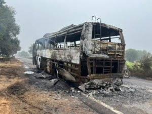 ( थाना रैणी क्षेत्र सवारियों से भर में सार्ट सर्किट से लगी आग बाल -बाल बची सभी सवारियां बस जलकर हुई राख )