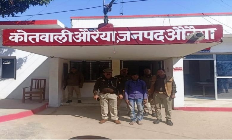 उत्तर प्रदेश औरैया पुलिस अधीक्षक जनपद औरैया के द्वारा अपराध एवं वांछित अपराधियों के विरुद्ध चलाये जा रहे धर-पकड़ अभियान के क्रम में श्रीमान अपर पुलिस अधीक्षक औरैया दिगम्बर कुशवाहा के निर्देशन में श्रीमान क्षेत्राधिकारी औरैया महेन्द्र प्रताप सिंह के कुशल पर्यवेक्षण में थानाध्यक्ष पंकज मिश्रा कोतवाली औरैया मय हमराह का0 312 धीरेन्द्र कुमार द्वारा मुखबिर की सूचना पर मु0अ0सं0 79/2024 धारा 302 भादवि थाना कोतवाली जनपद औरैया से सम्बन्धित एक नफर वांछित अभियुक्त राजेश कुमार पुत्र कुँवर लाल उर्फ छोटई निवासी ग्राम शहबदिया थाना कोतवाली जनपद औरैया को दिबियापुर औरैया रोड पर आगे रूदौली मोड के पास समय करीब 23.10 बजे गिरफ्तार किया गया। पूछताछ करने पर अभियुक्त ने अपना नाम राजेश कुमार पुत्र कुँवर लाल उर्फ छोटई निवासी ग्राम शहबदिया थाना कोतवाली जनपद औरैया बताया व दिनांक 08.02.2024 को गाँव शहबदिया के रविन्द्र की लोहे के सब्बल सिर में मारकर हत्या कर देना स्वीकार किया। अभियुक्त राजेश कुमार उपरोक्त का चालान कड़ी सुरक्षा मे माननीय न्यायालय किया जा रहा है।