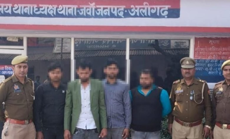 अलीगढ़ थाना जवां पुलिस द्वारा चेकिंग/दबिश के दौरान अवैध असलहा व कारतूस बरामद 04 अभियुक्तों को किया गया गिरफ्तार। ( पंकज झां की खास रिपोर्ट )