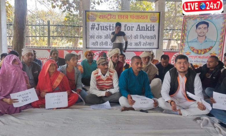 ( थाना नगर कोतवाली क्षेत्र अंकित तिवारी हत्याकांड में आरोपी को गिरफतार के प्रकरण में छात्र पंचायत के कार्यकर्ताओं ने मुख्यालय में किया धरना-प्रदर्शन )
