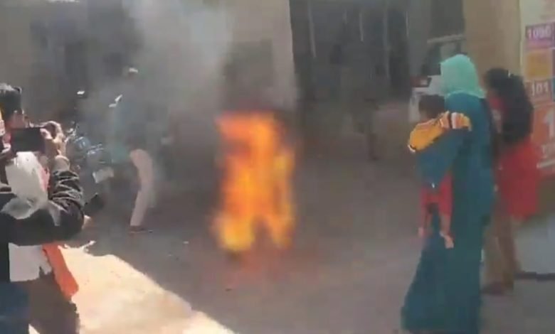 यूपी के शाहजहाँपुर में पिकप चोरी होने की रिपोर्ट दर्ज नहीं होने से आहत युवक ने एसपी ऑफिस के सामने पहुंच कर लगाई आग |बच्चा चिल्लाता रहा……पापा पापा ????वीडियो ह्रदयविदारक है, कलेजा मजबूत हो तभी देखें अन्यथा डाऊनलोड ना करें पीड़ित युवक ने पुलिस अधीक्षक कार्यालय में घुसकर अपने आप को आग लगाकर जान देने का किया पूरा प्रयास | पेट्रोल छिड़ककर पुलिस अधीक्षक कार्यालय पहुंचे पीड़ित ने किया खुद को आग के हवाले | पुलिस में सुनवाई न होने के कारण पीड़ित ने खुद को किया आज के हवालेयुवक के आग लगाने से पुलिस अधीक्षक कार्यालय में मचा हड़कंप |आनन फानन में पुलिस कर्मियों ने आज की लपटों से घिरे युवक की आज बुझाकर मेडिकल कॉलेज को किया रवाना |