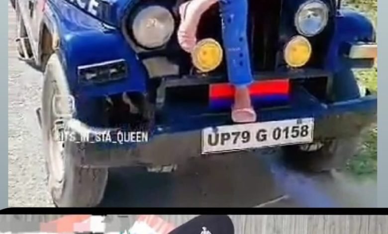 उत्तर प्रदेश जनपद औरया में सरकारी जीप की बोनट पर बैठकर महिला ने रील बनाकर सोशल मीडिया पर किया वायरल तत्काल उच्च अधिकारियों ने लिया संज्ञान में सिपाही को किया तत्काल प्रभाव से लाइन हाजिर। ( पंकज सिंह राणावत की खास रिपोर्ट )