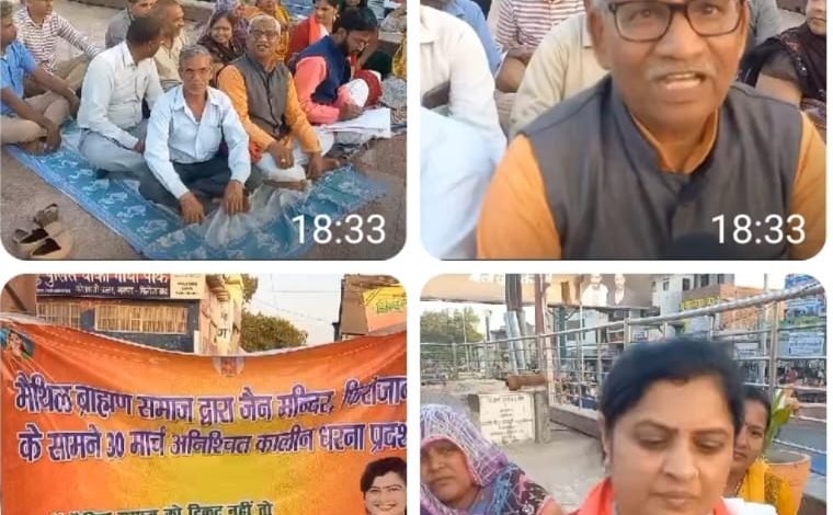 फिरोजाबाद शिकोहाबाद क्षेत्र भारतीय जनता पार्टी से टिकट न मिलने पर मैथली ब्राह्मण समाज के लोग जैन मंदिर में अपनी मांग को लेकर बैठे धरनें पर । ( वरिष्ट व्यूरो प्रमुख सन्नेश कुमार गुप्ता की खास रिपोर्ट )