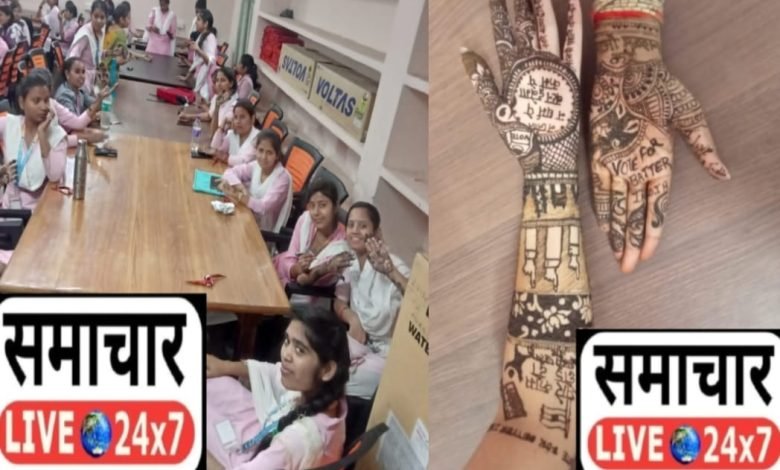 औरया जिलाधिकारी के निर्देशन में अजीतमल जिला शिक्षा एंव प्रशिक्षण संस्थान में छात्राओं द्वारा आगामी 2024 लोकसभा चुनाव में मतदाताओं को जागरूक करने हेतु मेंहदी कार्यक्रम का किया गया आयोजन। ( पंकज सिंह राणावत की खास रिपोर्ट )