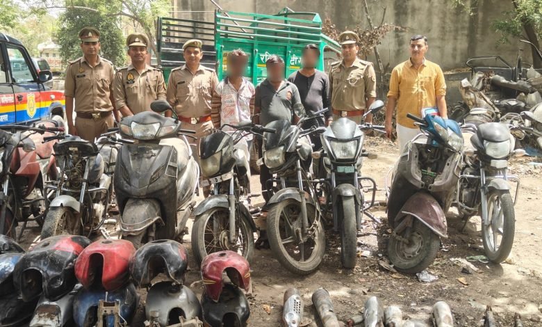 आगरा थाना हरीपर्वत पुलिस/ एसओजी टीम व सर्विलांस टीम द्वारा चेकिंग/दबिश के दौरान चोरी की 08 मोटरसाइकिल व भारी मात्रा पार्ट्स बरामद कर 03 अभियुक्तों को किया गया गिरफ्तार। ( जी,डी, वर्मा की खास रिपोर्ट )