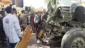 ( कल्याणपुर थाना क्षेत्र अनियंत्रित होकर गिट्टी लदा पलटा ट्रक चालक हुआ गंभीर रूप से घायल )