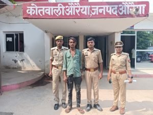 उत्तर प्रदेश औरैया पुलिस अधीक्षक औरैया चारू निगम द्वारा अपराध एवं अपराधियों के विरूद्ध लगातार चलाये जा रहे अभियान के क्रम में श्रीमान क्षेत्राधिकारी औरैया महेन्द्र प्रताप सिंह के कुशल पर्यवेक्षण में प्रभारी निरीक्षक अपराध श्री सत्यप्रकाश सिंह थाना कोतवाली औरैया के नेतृत्व में म0उ0नि0 आनन्द कुमारी मय हमराह का0 65 सत्यम व का0 1309 अंकित व का0 विपेन्द्र गुर्जर के द्वारा मुखबिर की सूचना पर 25000 रुपये इनामिया अभियुक्त नदीम खान उर्फ बल्लू उर्फ बुलेट पुत्र कोले उर्फ समीरबेग निवासी मो0 विधीचन्द्र थाना कोतवाली जनपद औरैया को अभियुक्त के घर के पास मो0 विधीचन्द्र से समय करीब 13:15 बजे गिरफ्तार किया गया । अभियुक्त नदीम खान उर्फ बल्लू उर्फ बुलेट उपरोक्त को कडी सुरक्षा में माननीय न्यायालय पेश किया जा रहा