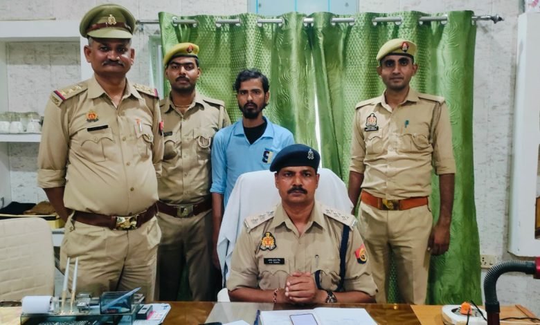 उत्तर प्रदेश औरैया थाना ऐरवाकटरा पुलिस टीम को मुखबिर खास द्वारा सूचना दी गयी कि कुछ व्यक्ति एक डी0सी0एम0 से गाय व बछडे लेकर लखनऊ एक्सप्रेस वे से लखनऊ की ओर जा रहे है व उनके आगे एक सफेद रंग की होण्डा अमेज कार चल रही है यदि जल्दी की जाये तो पकडे जा सकते है । मुखबिर की सूचना पर विस्वास करके थाना ऐरवाकटरा पुलिस द्वारा हरनागर पुल के ऊपर बैरियर लगाकर चेकिंग कर रहे थे कि एक सफेद रंग की होण्डा अमेज कार व डी0सी0एम0 थोडी दूरी पर रुकी तो पुलिस द्वारा आवश्यक घेराबन्दी कर पकड़ लिया जिसमें 03 व्यक्ति कार में और 03 व्यक्ति डी0सी0एम0 में बैठे थे जिसमें से दो व्यक्ति जो डी0सी0एम0 में बैठे थे वो भौगोलिक स्थिति का फायदा उठाकर भागने में सफल रहे । पकड़े गये व्यक्तियों से नाम पता पूछा तो 01-शिवा सोनी पुत्र रामकुमार निवासी देवीजी मोहल्ला मुखर्जीनगर थाना राजपुर जनपद कानपुर देहात 02- रशू पाण्डेय उर्फ शान्तनू पुत्र रामकुमार पाण्डेय निवासी मुखर्जीनगर थाना राजपुर जनपद कानपुर देहात 03- विजय कुमार दोहरे पुत्र बांकेलाल निवासी तुर्कीपुर भगवानदास थाना अयाना जनपद औरैया 04- बीरू दोहरे पुत्र प्रहलाद सिंह निवासी तुर्की भगवान दास थाना अयाना जनपद औरैया को पकड कर थाना ऐरवाकटरा पर अभियोग मु0अ0सं0 31/2024 धारा 3/5/8 गोवध निवा0 अधि0 व 11 (1)(डी) पशू क्रूरता अधि0 पंजीकृत कर जेल भेजा गया था तथा फरार दोनो अभियुक्तों की गिरफ्तारी के लिए श्रीमान पुलिस अधीक्षक द्वारा 02 टीमों का गठन किया गया था । इसी क्रम में आज दिनांक 25/07/2024 को थाना ऐरवाकटरा/एस0ओ0जी0/सर्विलांस टीम औरैया की संयुक्त पुलिस दबिश,वाँछित/पुरूस्कार घोषित अपराधियों की तलाश में थाना क्षेत्र में मासूर थी कि मुखबिर द्वारा सूचना दी गयी सूचना के आधार पर मु0अ0सं0 31/2024 धारा 3/5/8 गोवध निवा0 अधि0 व 11 (1)(डी) पशू क्रूरता अधि0 के 25,000 रू0 ईनामियां अभियुक्त भीम दोहरे पुत्र मानसिंह निवासी तुर्कीपुर थाना अयाना जनपद औरैया उम्र 29 वर्ष को नगला दौलत कट से 100 मीटर आगे आगरा की तरफ सर्विस रोड से समय करीब 10.20 बजे गिरफ्तार कर माननीय न्यायालय भेजा जा रहा है ।