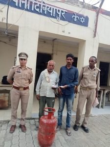 उत्तर प्रदेश औरैया पुलिस अधीक्षक औरैया व क्षेत्राधिकारी सदर औरैया जनपद औरैया के निर्देशन में म0उ0नि0 पूजा सिंह राठौर मय हमराह का0 171 अनुज कुमार, का0 1044 यशकान्त, का0 1164 अमर सिंह मय सरकारी जीप UP79G0160 मय चालक हे0का0 167 विपिन बिहारी मिश्रा के थाना हाजा से रवाना होकर विनावर देखभाल क्षेत्र रोकथाम जुर्म जरायम शान्ति व्यवस्था डियूटी व तलाश वांछित अभियुक्त सम्बन्धित मु0अ0स0 487/24 धारा 331(4)/305(A) बीएनएस थाना दिबियापुर जनपद औरैया में मामूर थे कि गस्त करते हुये ककोर बम्बा पुलिया से होते हुये ग्राम कनारपुर की तरफ जा रहे थे पुलिया के पास कुछ आहट सुनाई दी उतरकर जाकर मय हमराही पुलिस बल के देखा गया तो पेड़ के नीचे दो व्यक्ति सिलेण्डर पकड़े दिखाई दिये, पूछा गया तो कुछ नही बोले, घेरकर एक बारगी दबिश देकर दोनो व्यक्तियो को पकड़ लिया। 1. श्याम बाबू उर्फ हनुमान पुत्र लक्ष्मण उम्र करीब 55 निवासी पुर्वा फकीरे थाना सहायल जनपद औरैया 2. इन्दल सिंह पुत्र रामप्रकाश उम्र करीब 40 वर्ष नि० दूरदर्शकपुर थाना फफूँद जनपद औरैया जिनके पास से एक अदद गैस सिलेण्डर व 1300 रुपये नगद बरामद हुए। अभि० को समय से माननीय न्यायालय के समक्ष पेश किया जा रहा है।