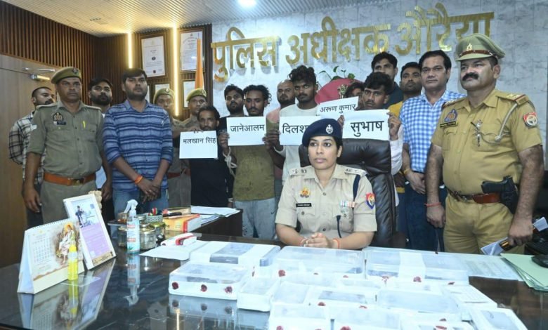 उत्तर प्रदेश औरया अपर पुलिस महानिदेशक कानपुर जोन,कानपुर एवं पुलिस महानिरीक्षक कानपुर परिक्षेत्र, कानपुर के निर्देशन व पुलिस अधीक्षक औरैया श्रीमती चारू निगम के पर्यवेक्षण में थाना बेला/थाना सहार/एस0ओ0जी0/सर्विलांस टीम औरैया द्वारा की गयी कार्यवाही। दिनांक 08/08/2024 को सत्यम पुत्र रामरधुवीर नि0 पसनी निवादा थाना रसूलाबाद जनपद कानपुर देहात द्वारा थाना बेला पर लूट के संबंध मे दी गई तहरीर के आधार पर मु0अ0सं0 137/24 धारा 310(2)/317(3) बी.एन.एस बनाम अज्ञात के विरुद्ध अभियोग पंजीकृत हुआ था जिसके अंतर्गत पुलिस अधीक्षक औरैया श्रीमती चारु निगम द्वारा त्वरित कार्यवाही करते हुए माल व मुल्जिमान की शीघ्र अति शीघ्र बरामदगी/गिरफ्तारी हेतु कुल 3-टीमें गठित की गयी थीं गठित टीमों द्वारा पतारसी सुरागरसी करते हुए संयुक्तरुप से थाना बेला क्षेत्रान्तर्गत दिनांक- 10.08.2024 की रात्रि को बेला दिबियापुर रोड पर पटना नहर पुल पर संदिग्ध व्यक्ति/वाहनों की चेकिंग के दौरान पटना नहर पुल से बेला रोड पर नुनारी गांव के करीब 500 मीटर आगे सडक के बायी ओर दो मोटरसाइकलों पर पांच संदिग्ध व्यक्ति दिखाई दिये जिन्हे पुलिस टीम द्वारा टोका गया तो पुलिस को देखकर भागने का प्रयास करने लगे तथा पुलिस टीमों द्वारा योजनाबद्ध तरीके से घेर कर पांचो व्यक्तियों को मोटरसाइकिल सहित पकड लिया गया तथा पूछताछ की गयी तो पल्सर नं0 UP74AJ9717 सवार पहले व्यक्ति जाने आलम पुत्र गुडेश जिसकी जामातलाशी से vivo मोबाइल फोन, एक अदद तमन्चा .315 बोर व दो अदद जिन्दा कारतूस .315 बोर व नकद 6000 रू0 । दूसरे व्यक्ति दिलशाद पुत्र बल्लू की जामातलाशी से एक Redmi 8 नीले रंग का मोबाइल फोन, एक अदद तमन्चा .315 बोर व दो अदद जिन्दा कारतूस .315 बोर व नकद 6500 रुपये मिले। स्पलेन्डर मो0सा0 UP79AC4162 सवार तीसरे व्यक्ति अरूण कुमार पुत्र रामबाबू की जामातलाशी से नकद 6000 रू0 रुपये । चौथे व्यक्ति मलखान सिंह पुत्र सदन सिंह की जामा तलाशी से एक अदद तंमचा .315 बोर, दो अदद जिन्दा कारतूस .315 बोर व नकद 5500 रुपये । पांचवे व्यक्ति सुभाष पुत्र राजेन्द्र की जामातलाशी एक अदद तमन्चा 12 बोर, दो अदद जिन्दा कारतूस 12 बोर व नकद 6000 रुपये बरामद हुए। पुछताछ व बरामदगी के आधार पर स्पेन्लडर मो0सा0 UP79AC4162 के कागजात न होने पर अन्तर्गत धारा 207 सीज किया गया व पल्सर मोटरसाइकिल जनपद कन्नौज से लूटना बताया। अभियुक्तगण उपरोक्त से बरामद अवैध शस्त्र व कारतूस रखने के सम्बन्ध में क्रमशः मु0अ0स0 140/24 धारा 3/25 आर्म्स एक्ट, मु0अ0स0 141/24 धारा 3/25 आर्म्स एक्ट, मु0अ0स0 142/24 धारा 3/25 आर्म्स व 143/24 धारा 3/25 आर्म्स एक्ट थाना बेला पर पंजीकृत कर अन्य विधिक कार्यवाही प्रचलित है।