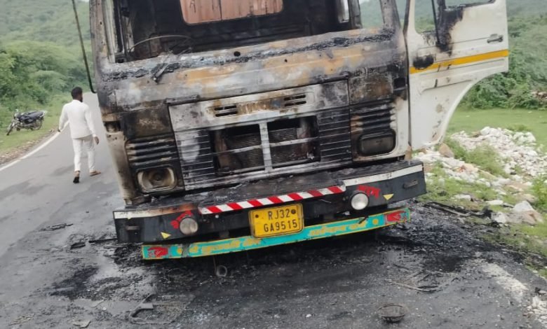 राजगढ़ अलवर टहला सड़क मार्ग पर टहला के घाट में चलते हुए ट्रक में आग लग गई। जिससे ट्रक जलकर राख हो गया।