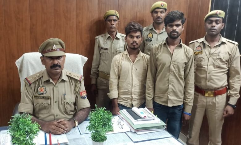 उत्तर प्रदेशऔरैया श्रीमान पुलिस अधीक्षक जनपद औरैया श्रीमती चारू निगम के कुशल निर्देशन में अपराध एवं अपराधियों के विरूद्ध चलाये जा रहे अभियान के क्रम में व क्षेत्राधिकारी बिधूना श्री भरत पासवान के निकट पर्यवेक्षण में व थाना प्रभारी बिधूना श्री महेन्द्र सिंह के नेतृत्व में थाना बिधूना पुलिस टीम द्वारा आज दिनांक 26.08.2024 को हसेरन जाने वाली रोड से 10 कदम दूर पुर्वा पसी गाँव जाने वाली कच्ची रोड से थाना हाजा पर पंजीकृत मु0अ0सं0 303/24 धारा 303(2) बीएनएस से सम्बन्धित प्रकाश में आये अभियुक्तगण 01. शिवशंकर पुत्र रामप्रसाद 02. गोपाल पुत्र गंगाराम को गिरफ्तार किया गया जिनके कब्जे से 02 मोटरसाइकिल (बिना नम्बर प्लेट) 01.प्लेटिना न0 UP 74 AD 3591 चेचिस नं0 MD2B77AXXLRJ76251 इंजन न0 PFXRLJ14645(संबंधित मु0अ0सं0 303/2024 थाना बिधूना जनपद औरैया) 02. TVS RAIDER रजिस्ट्रेशन नं0 UP 78 HS 7435 चेचिस नं0 MD625AF91R1A27460 इंजन नं0 AF9AR 1626966(एकसीडेंट घटना मे सम्मलित व चोरी हुई, थाना डेरापुर जनपद कानपुर देहात) बरामद की गई । बरामदगी के आधार पर थाना बिधूना पर पंजीकृत मु0अ0सं0 303/24 धारा 303(2) बीएनएस में धारा 317(2) की बढोत्तरी की गयी । अभियुक्तगणों को माननीय न्यायालय के समक्ष पेश किया जा रहा है ।