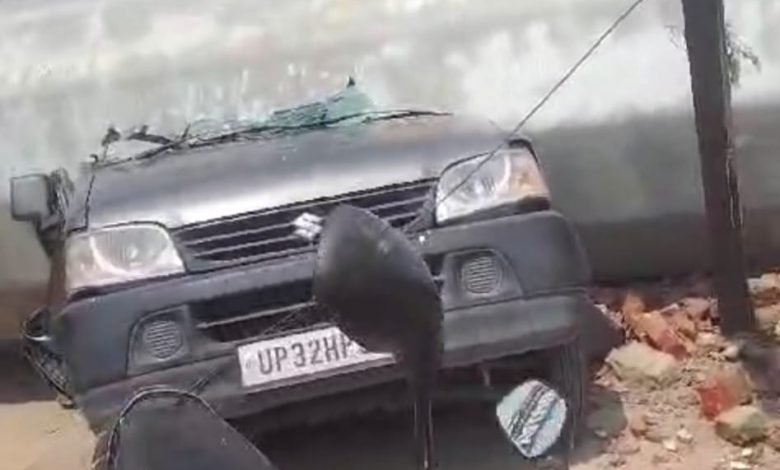 ( थाना सरोजनी नगर क्षेत्र बिजली का पोल लगाते समय गिरने से कार हुई क्षतिग्रस्त बाल-बाल बचे सभी )