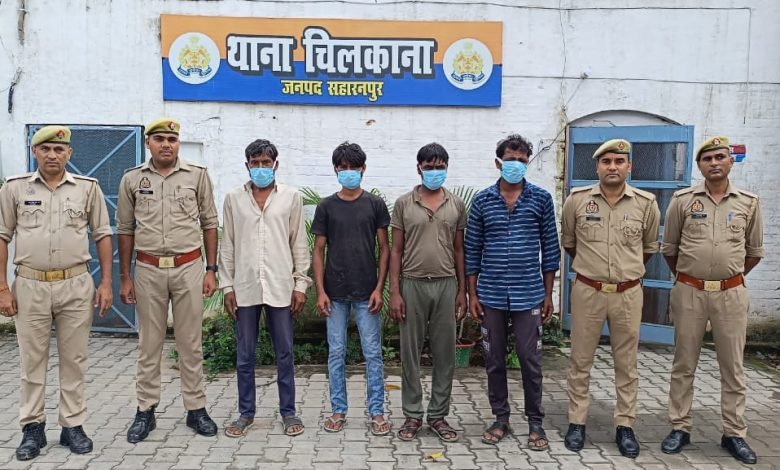 सहारनपुर थाना चिलकाना पुलिस टीम द्वारा चेकिंग/ दबिश के दौरान 04 वांछित अभियुक्तों को गिरफतार किया गया सलाखों के पीछे। ( कमल कश्यप की खास रिपोर्ट )