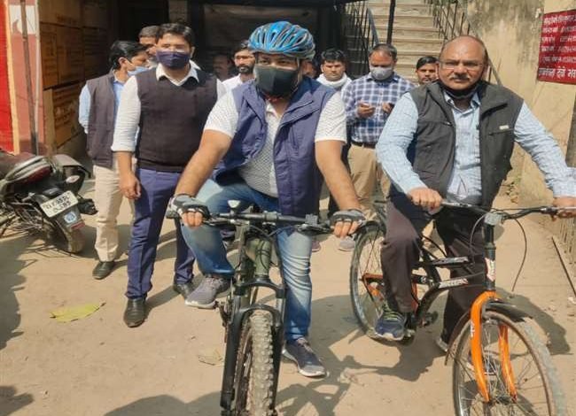 वाराणसी विद्युत विभाग के आला अधिकारी सहित उपभोक्ताओं के बिजली आपूर्ति के लिए संडे को भी निकले साइकिल पर फील्ड में